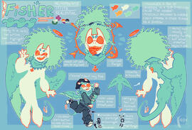 ⚓︎ comes with front and back refs, chibi clothes ref (optional), headshot, design details, and info box(es)